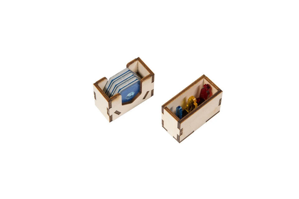 . Set up and start playing faster with the system of removable trays: 5 player board replacements with built-in resource trays, 2 removable resource trays and a special tile tray. Organize your cards (sleeved or unsleeved) in a removable card “shoe” ready for drawing and discarding. Plus, take off to Mars in style with an upgraded rocket first player token, and replacement acrylic Generation, Temperature, and Oxygen Markers.