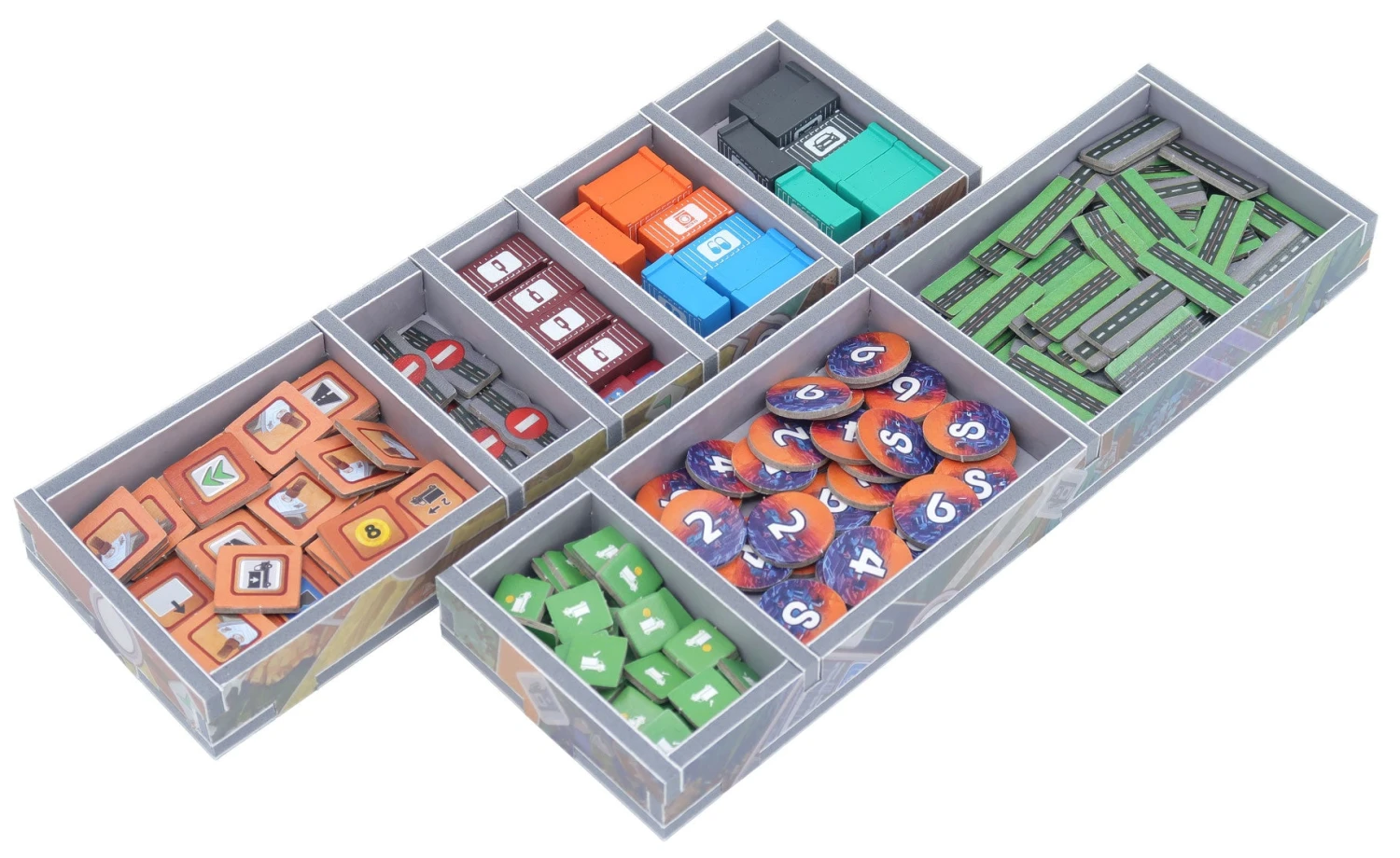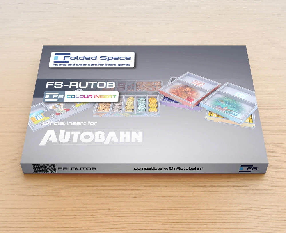 Official full colour insert compatible with Autobahn®. The design provides both efficient storage and improved game play. Many of the trays can be utilised during the game, and they greatly aid set-up and clear-away times.