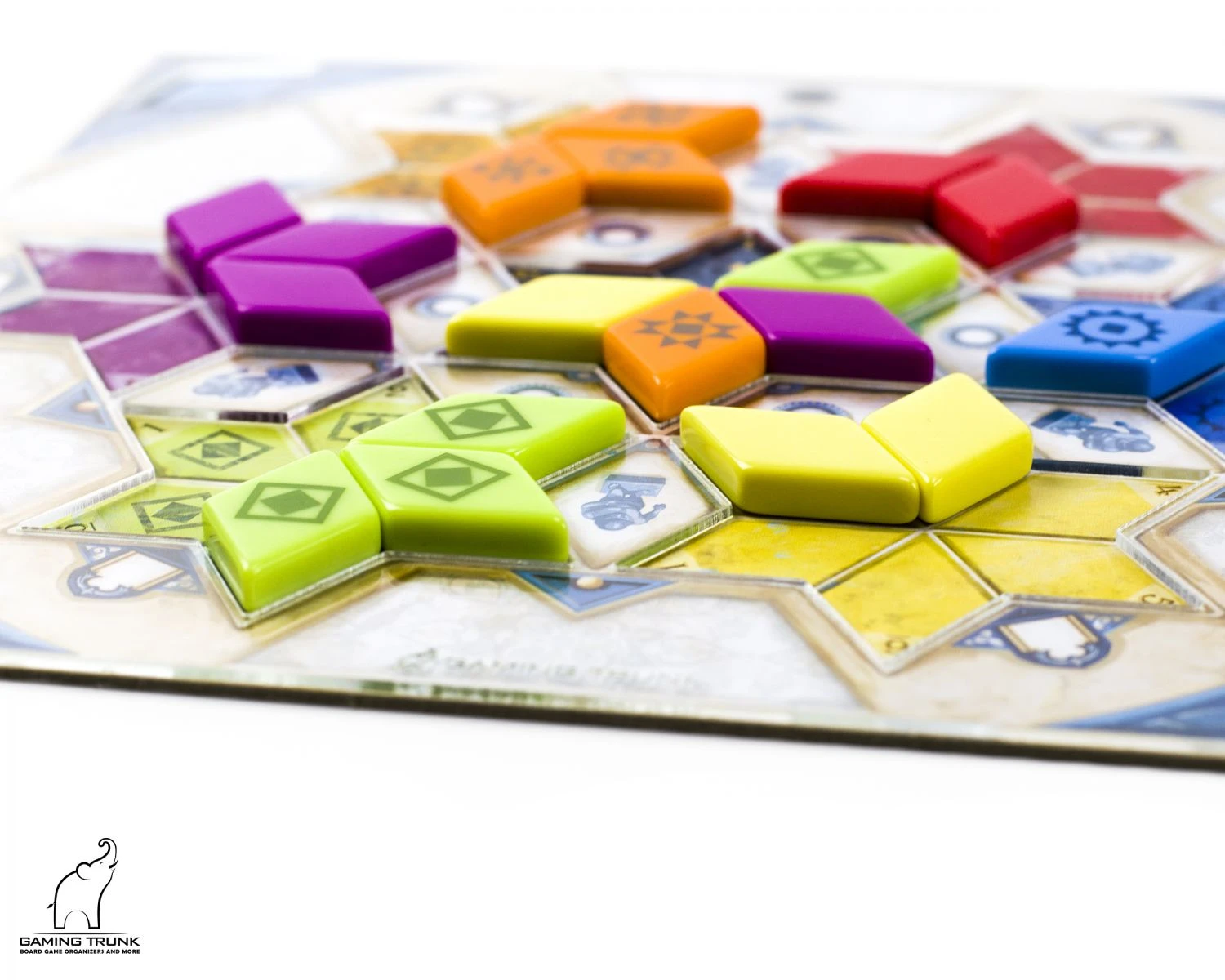 Four acrylic overlays for the Azul Summer Pavilion player boards and one overlay for the Scoring board.