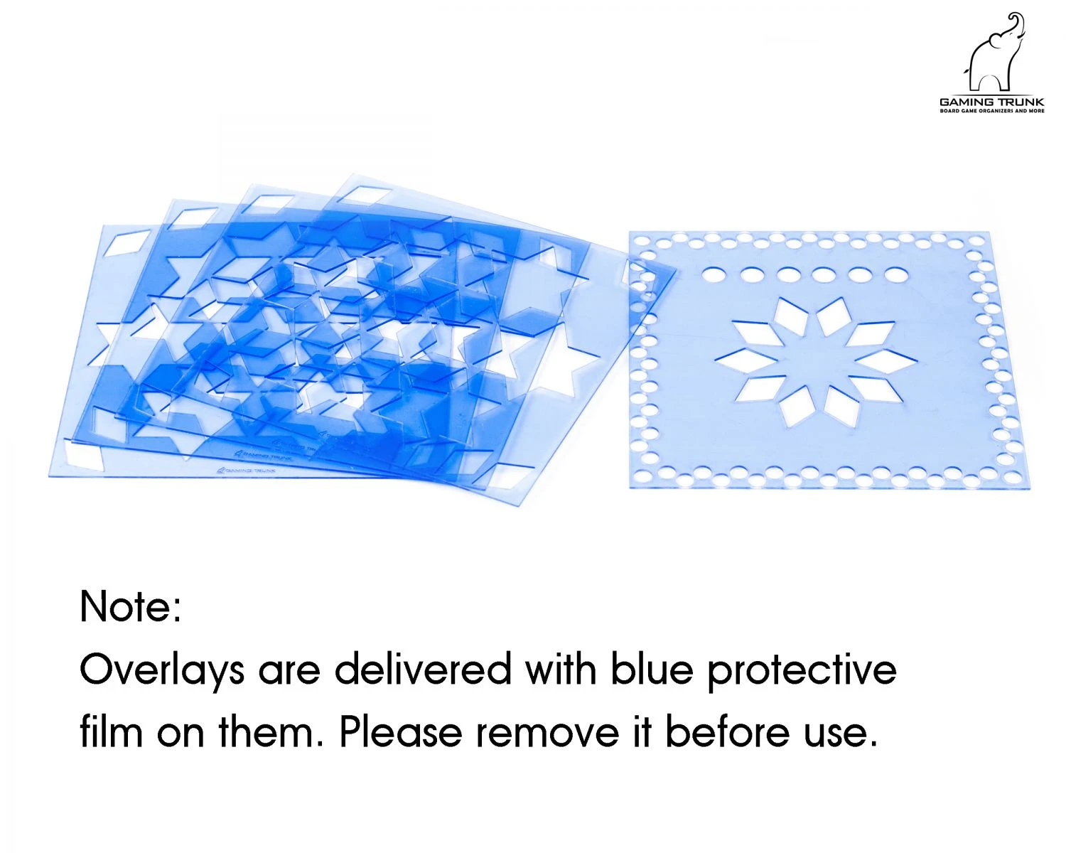The overlays do not require assembly but it is necessary to remove protective films before use.