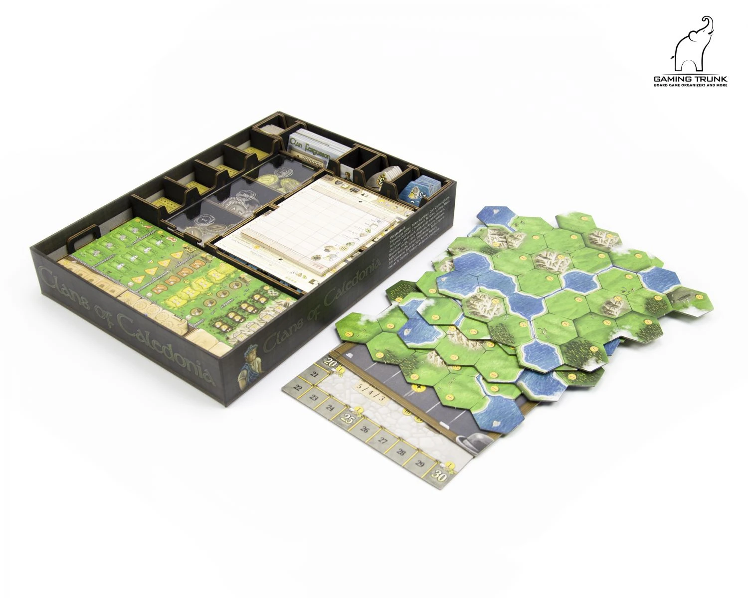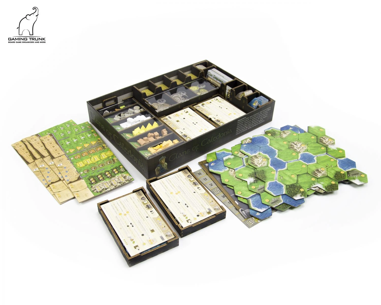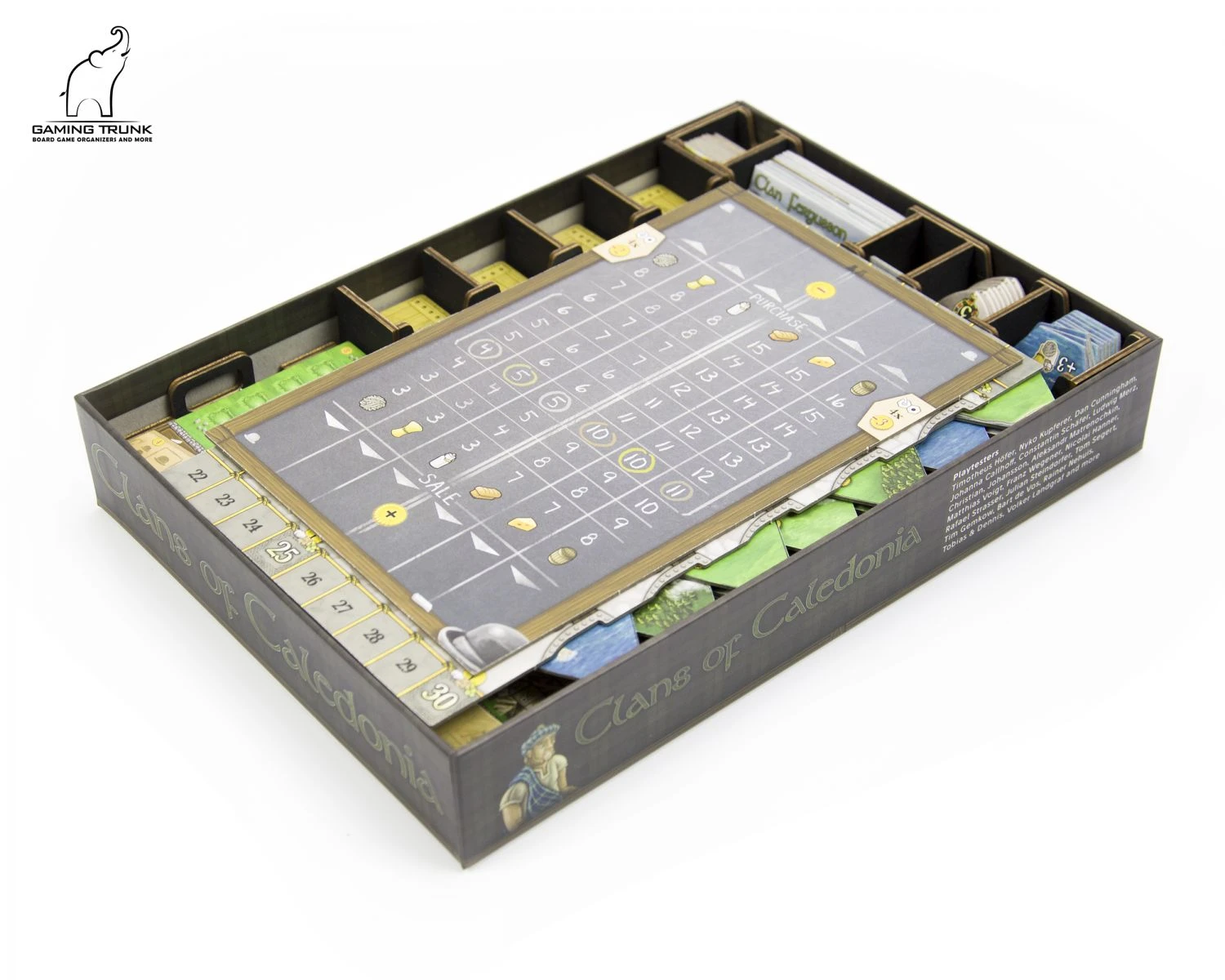 This organizer fits components of Clans of Caledonia™ conveniently in the original box.