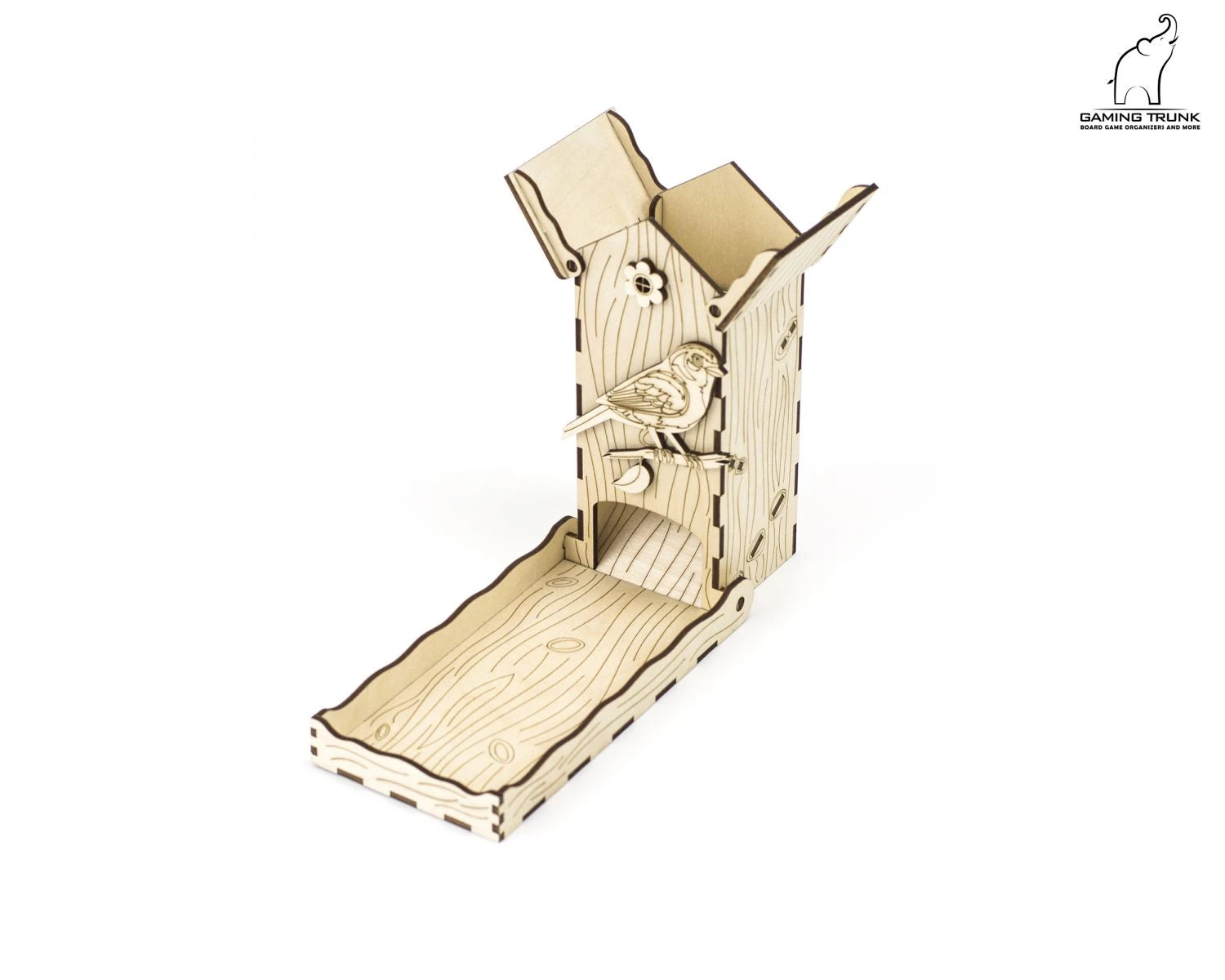 Chickadee Dice Tower is a small foldable dice tower. It fits standard size d6 dice. It can be used as a standalone dice tower or as a replacement for the dice tower in Wingspan from Stonemaier Games. It can be stored in the game box instead of the included tower. Our