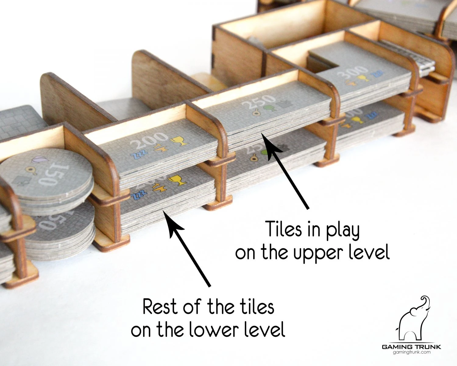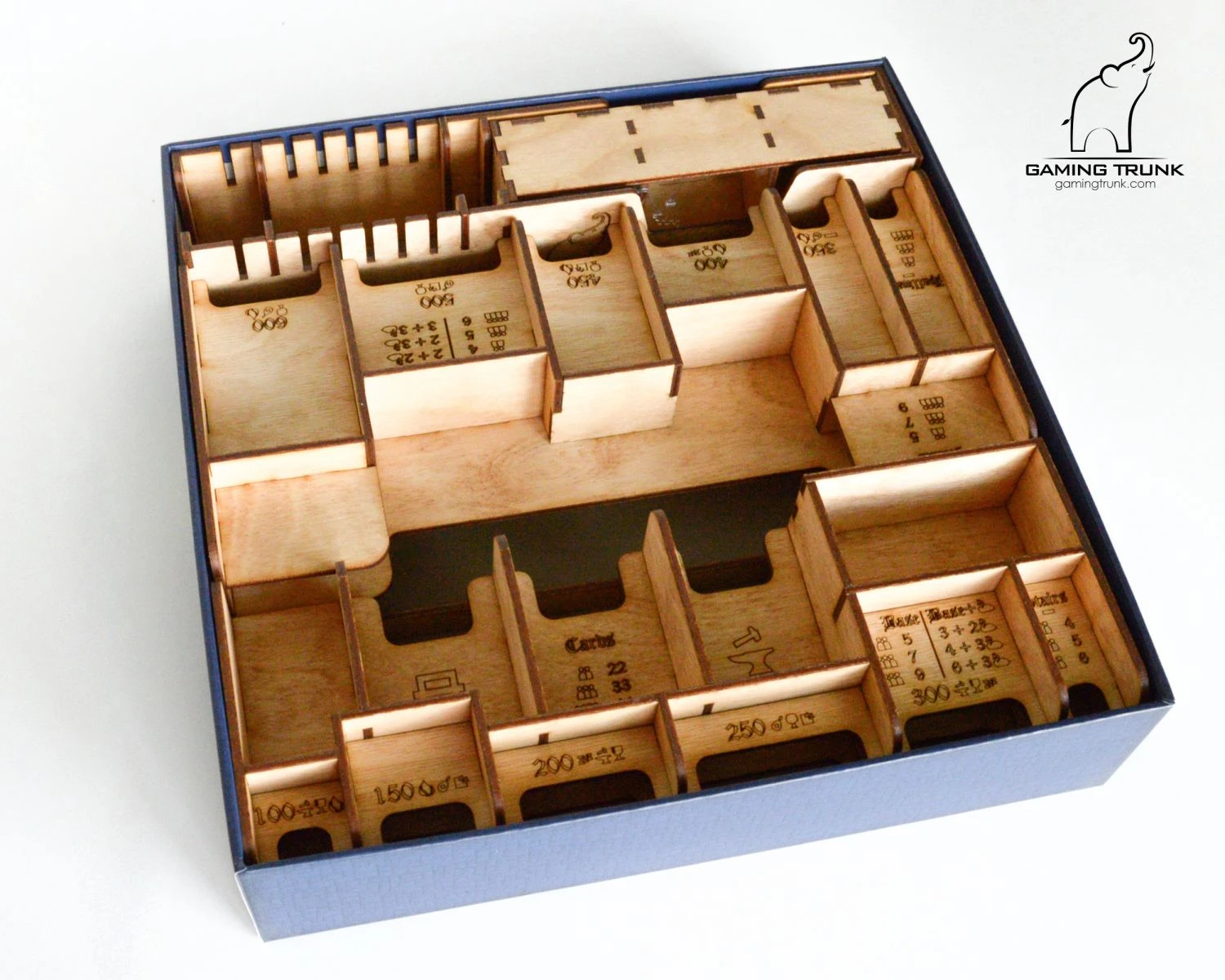 This organizer is compatible with Castles of Mad King Ludwig™. The organizer fits Castles of Mad King Ludwig™ and its expansion (Secrets™) conveniently in the original box.