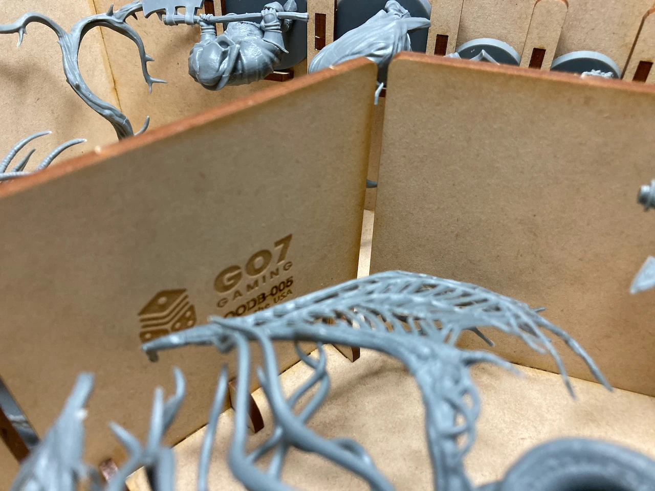 – Provides storage for large minis from Yahar’Gul and Byrgenwerth. Also provides space for 13 small minis. Â (Mergo’s, Yahar’Gul, or Byrgenwerth expansion box)