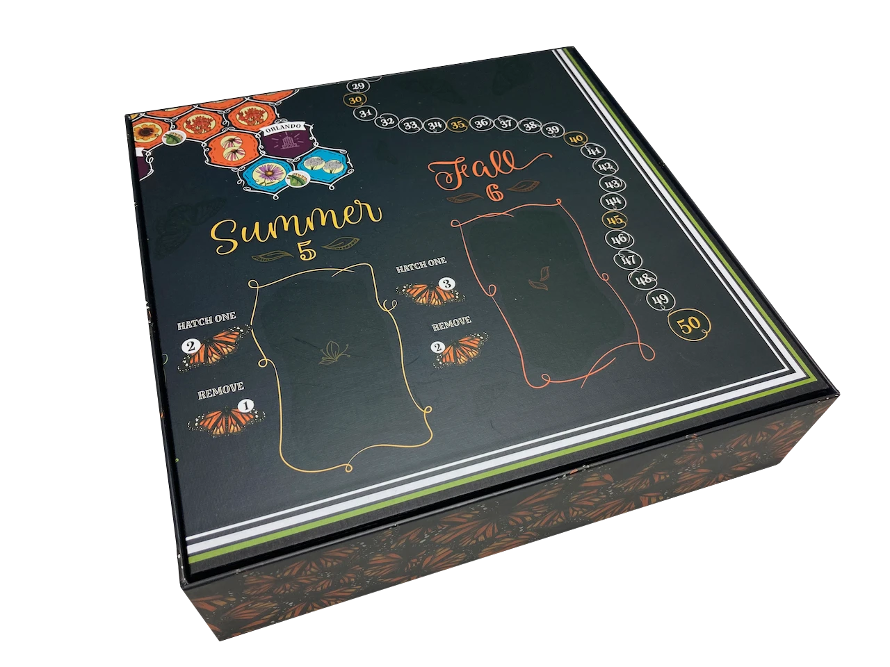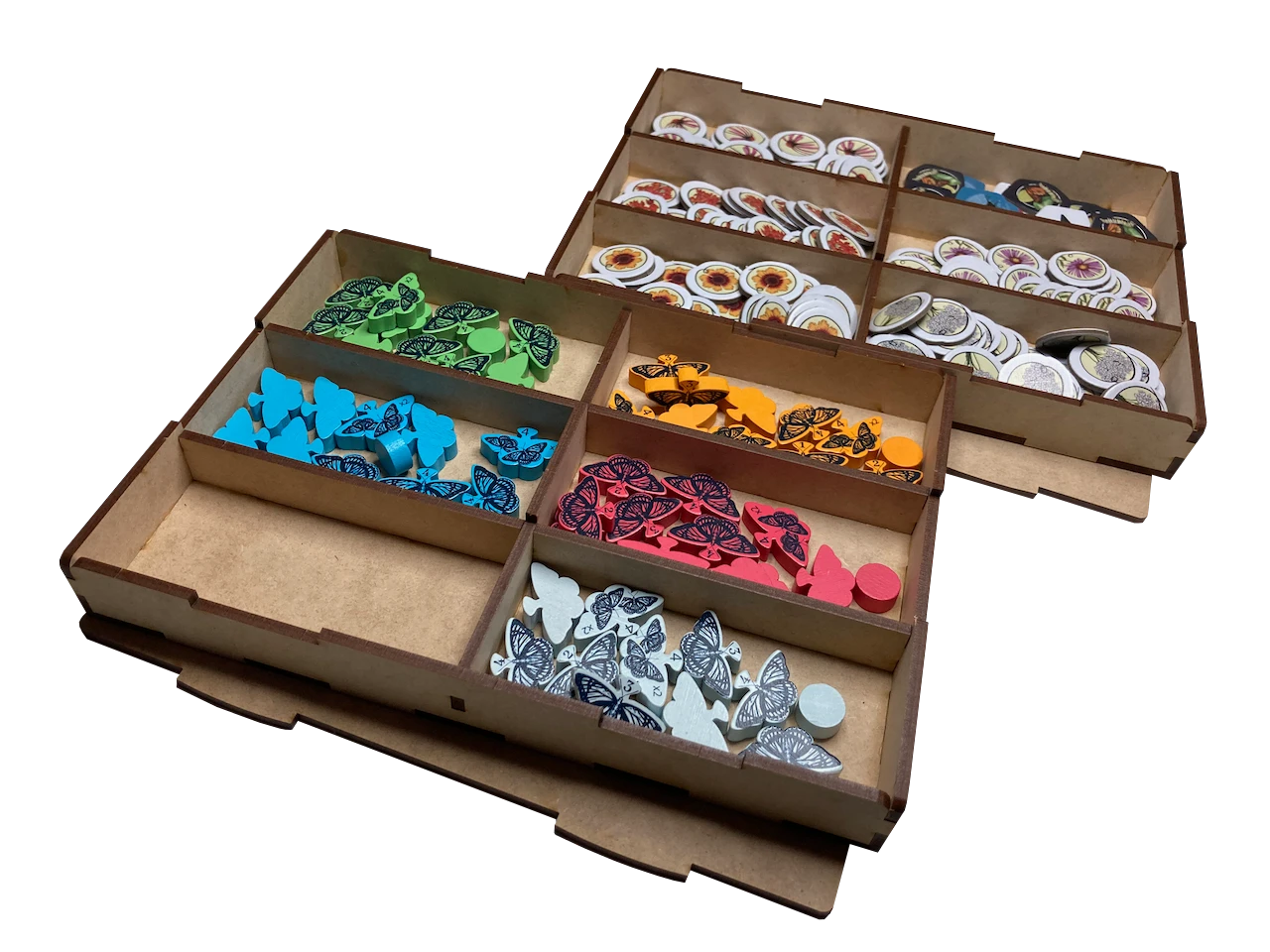- two (2) lidded, removable token trays for player components and game tokens