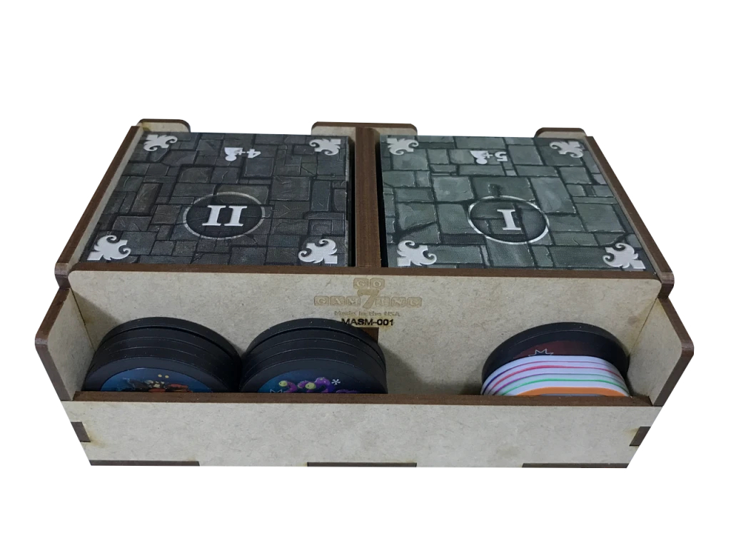 We provide a suggested mini storage plan in the construction instructions. While this plan doesn’t need to be followed, it is important to note that some minis must be stored in a specific spot or tray due to the mini dimensions.