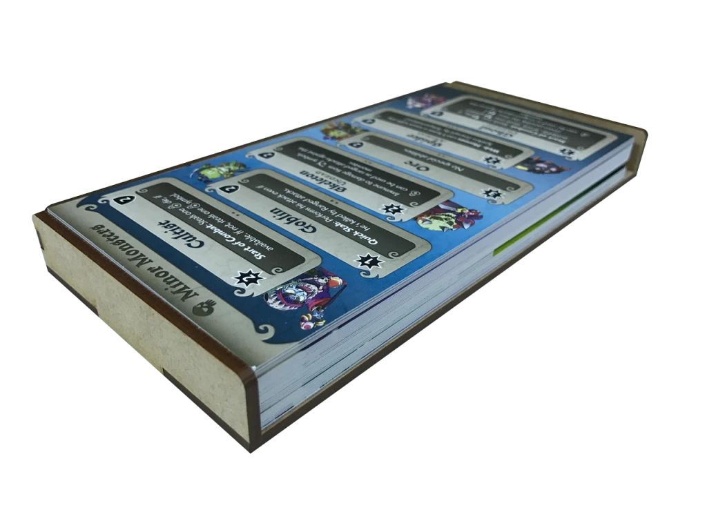 - This insert has 147mm of card lane storage. It can store ~506 unsleeved cards or ~300 Mayday Premium sleeved cards (.49mm per card). Keep in mind each wood divider will also use 3mm of card lane space. The values used for the card thickness estimate = .29mm. There are 186 standard cards in the game if your bought everything available in the Kickstarter, so plenty of room.
