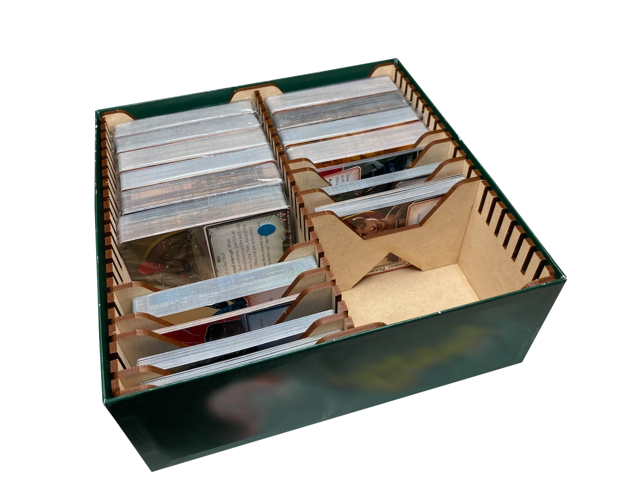 The Go7 Gaming organizer for Marvel Champions:Red Skull & Galaxy’s Most Wanted offers two lanes of large card storage. This organizer will provide a safe, structured home for your collection of expansion cards and unlike our