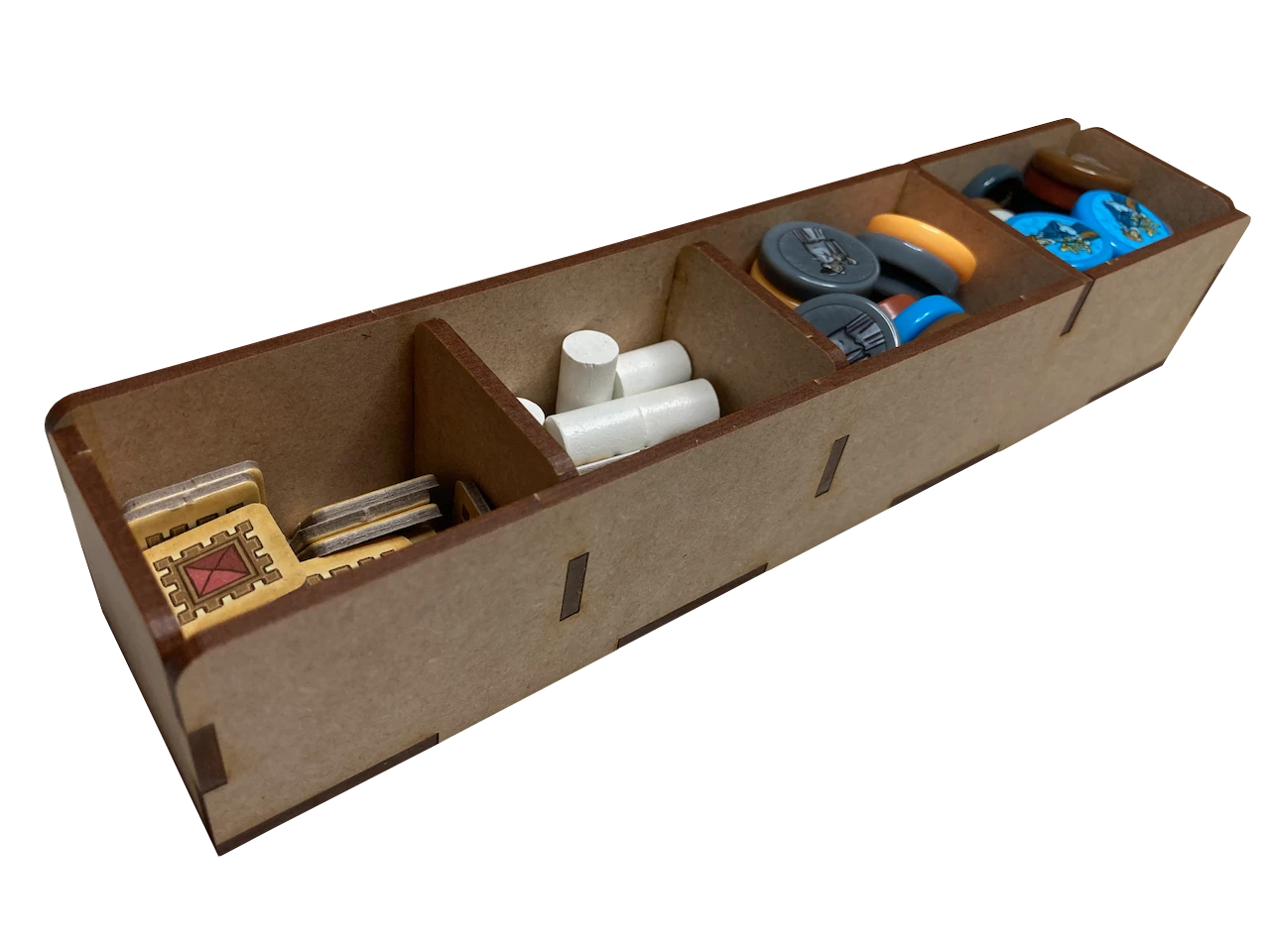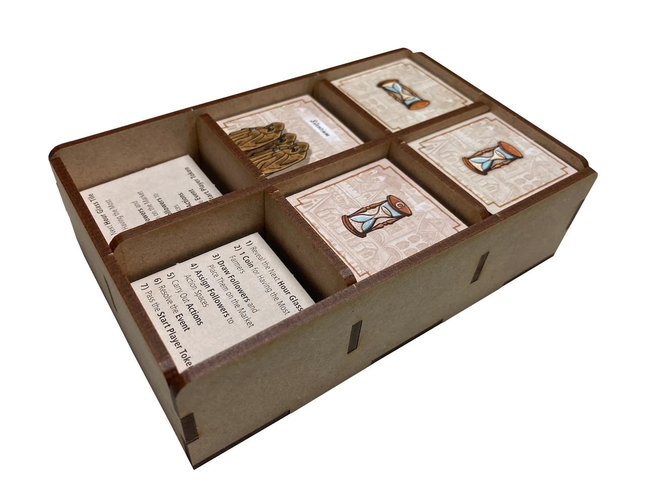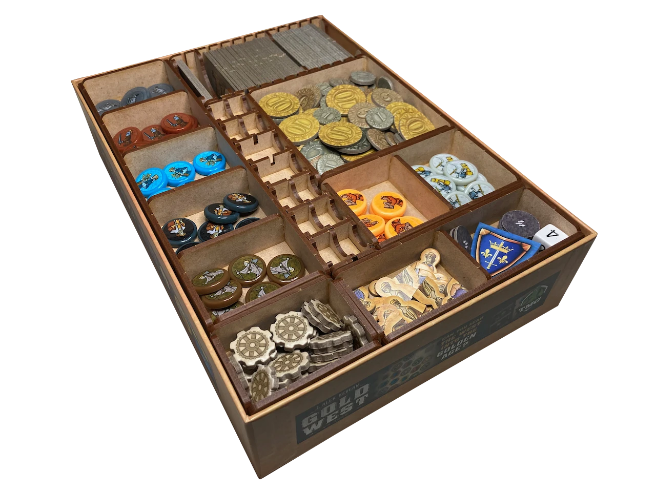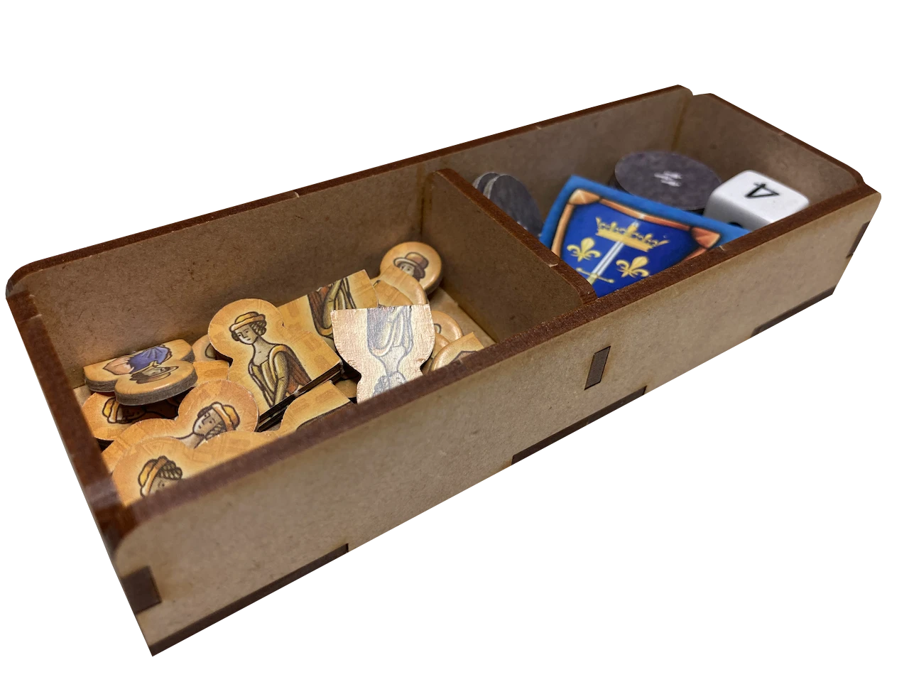 The Go7 Gaming organizer for Orléans provides a total storage solution for the TMG retail/deluxe version of Orléans, expansions, plus promos. Our solution is designed to store Orléans standard components, but can accommodate BGG resin character tokens or the Orléans Deluxe components from the KS and can be stored in the base game box (TMG edition), Invasion box (TMG edition), 2014 Deluxe box (TMG KS).
