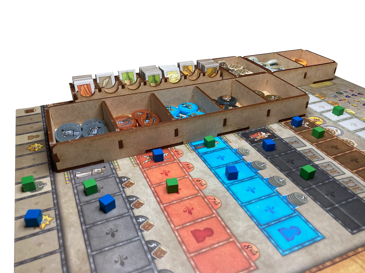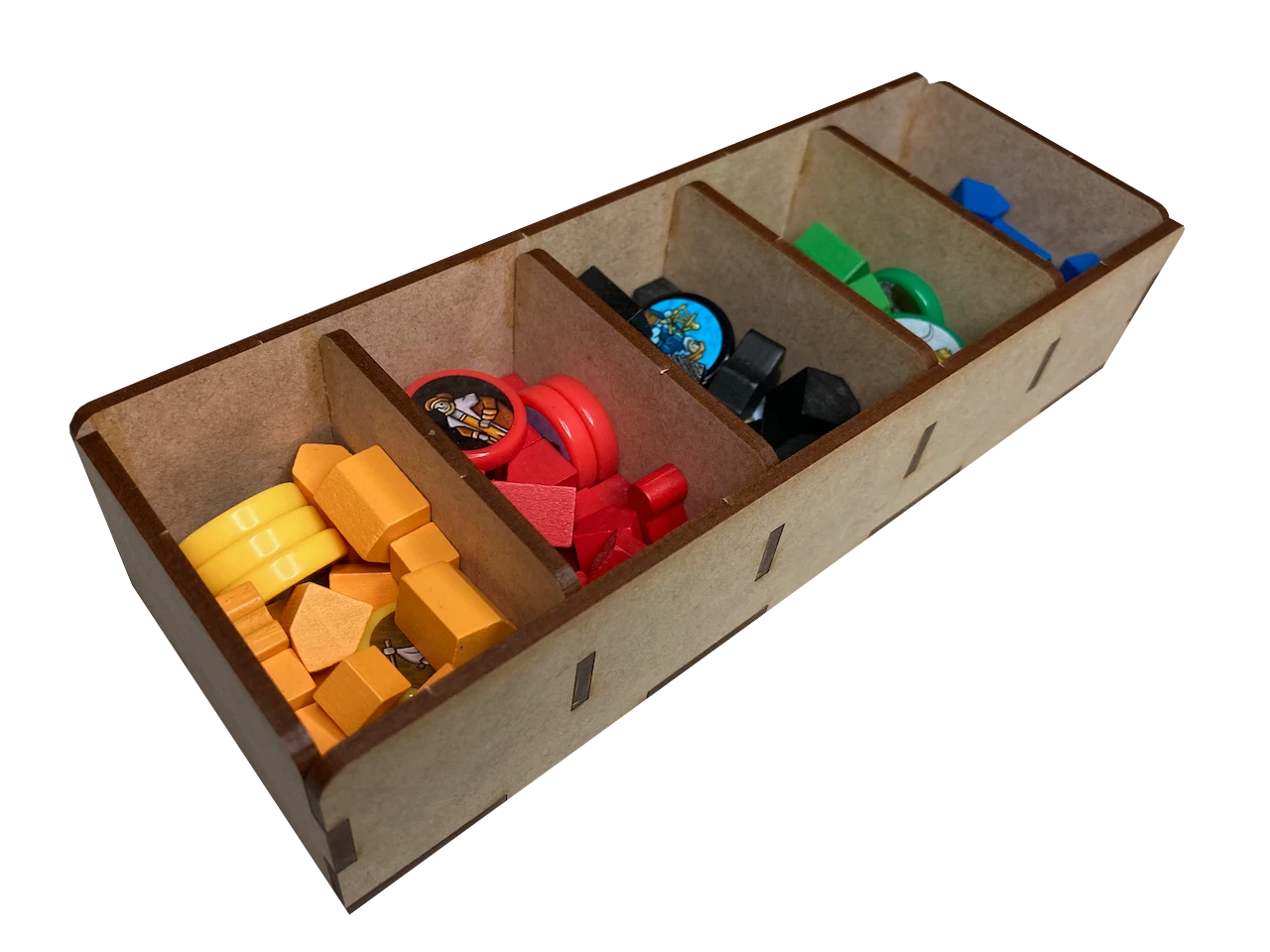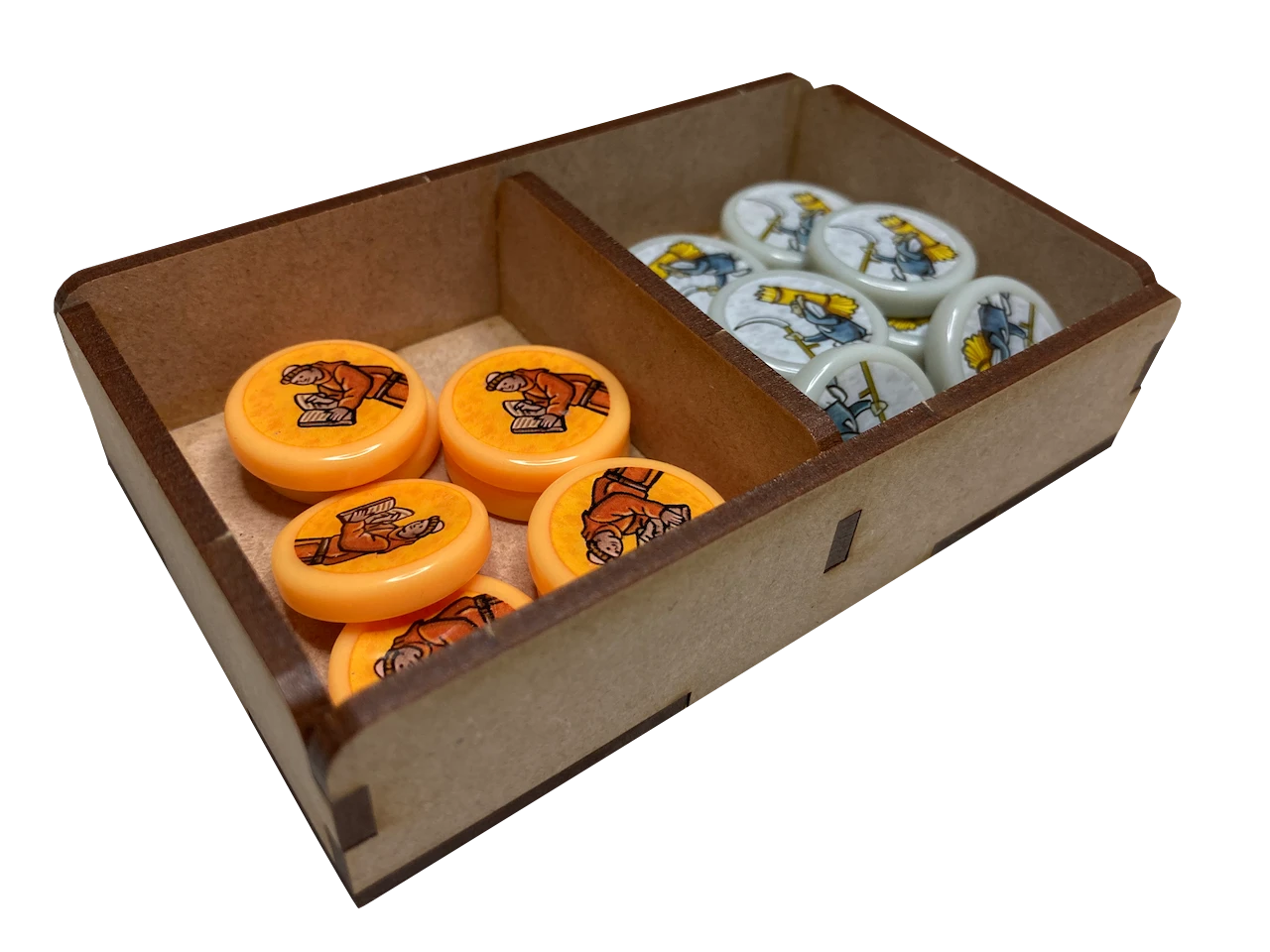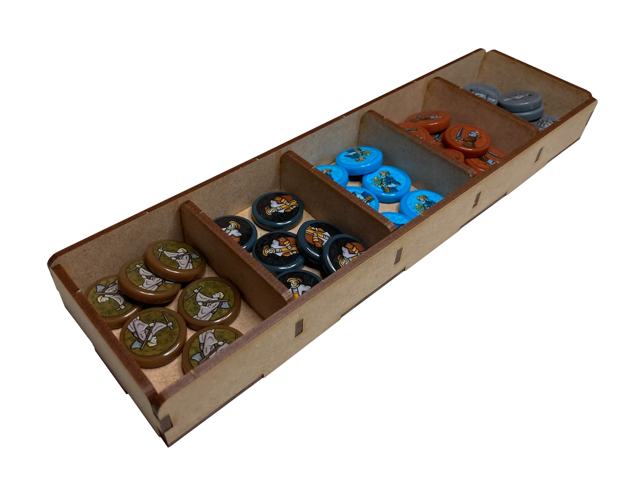 The Go7 Gaming organizer for Orléans provides a total storage solution for the TMG retail/deluxe version of Orléans, expansions, plus promos. Our solution is designed to store Orléans standard components, but can accommodate BGG resin character tokens or the Orléans Deluxe components from the KS and can be stored in the base game box (TMG edition), Invasion box (TMG edition), 2014 Deluxe box (TMG KS).