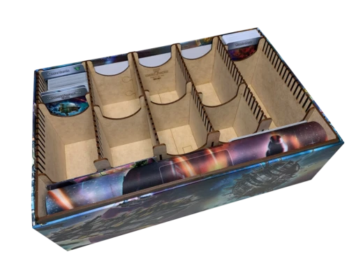 Our storage solution for the Star Realms Universal Storage Box takes a great start and makes it even better. our solution offers 895mm of card storage in five lanes and stores two play mats.