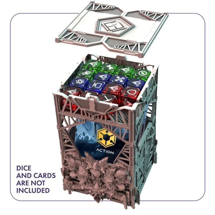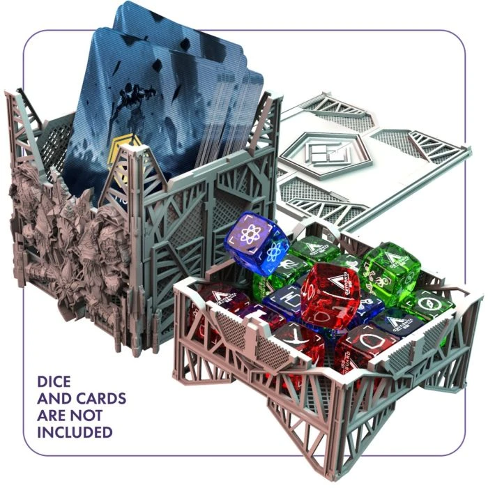 A set of four ornate hard plastic Section Boxes that hold all dice and cards of each Section. They replace the Section Trays built into the game’s insert, making it easier for every player to reach and sort their cards and dice.