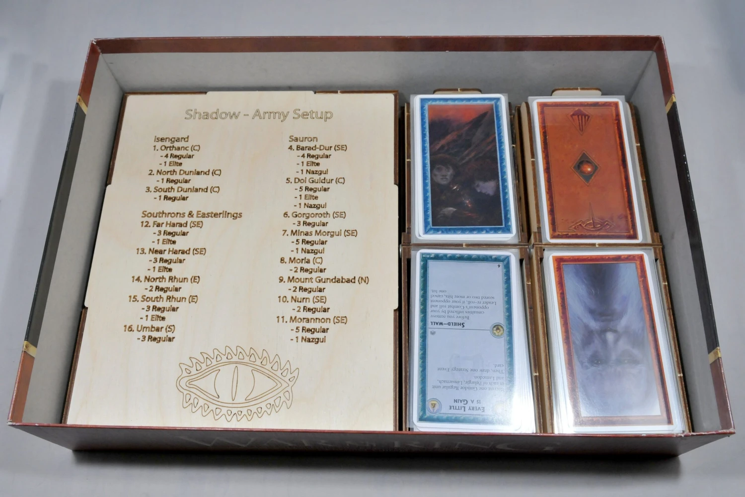 - The card trays can holds sleeved cards (Fantasy Flight sleeves or the Mayday sleeves designed for the game).