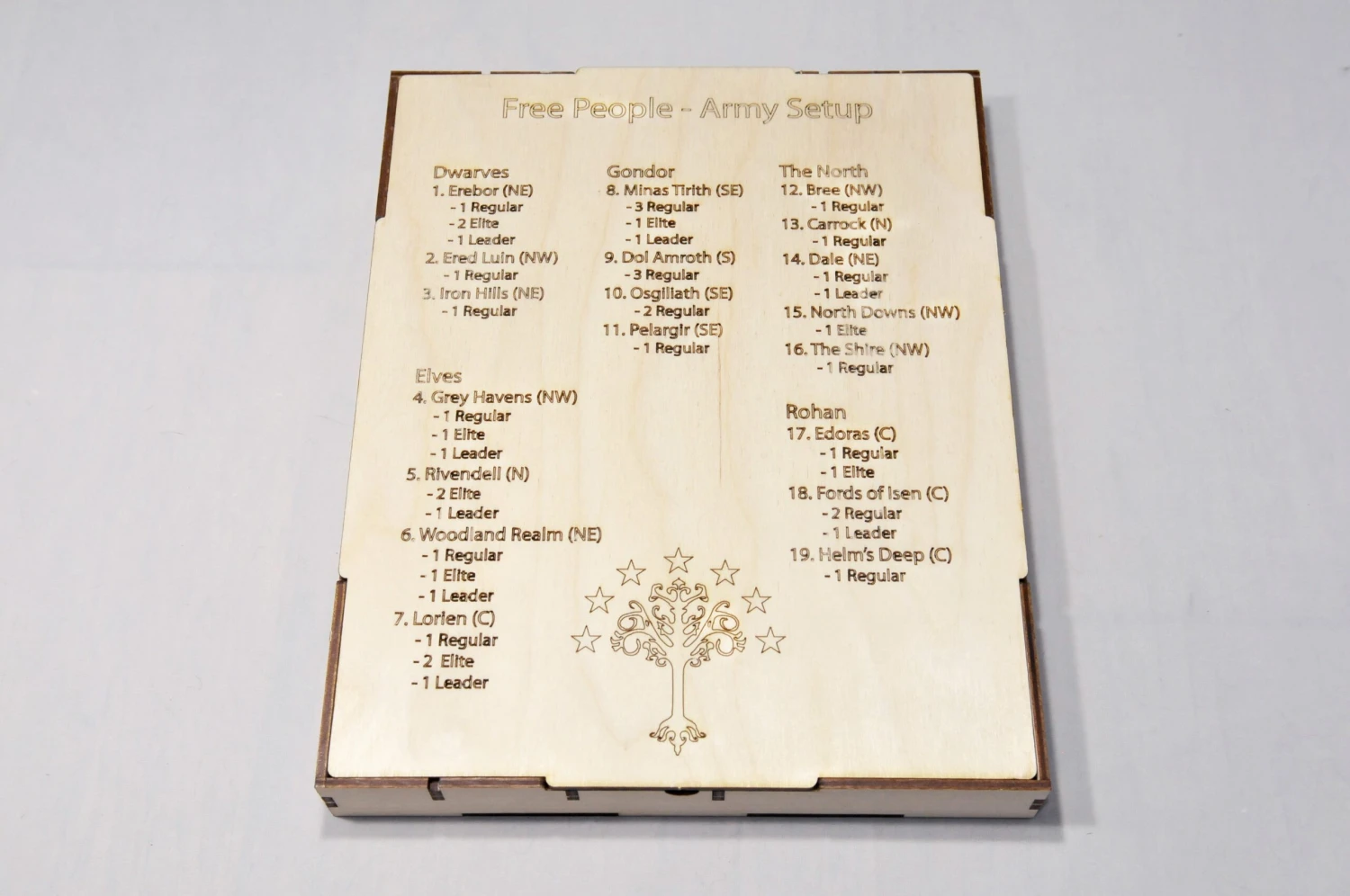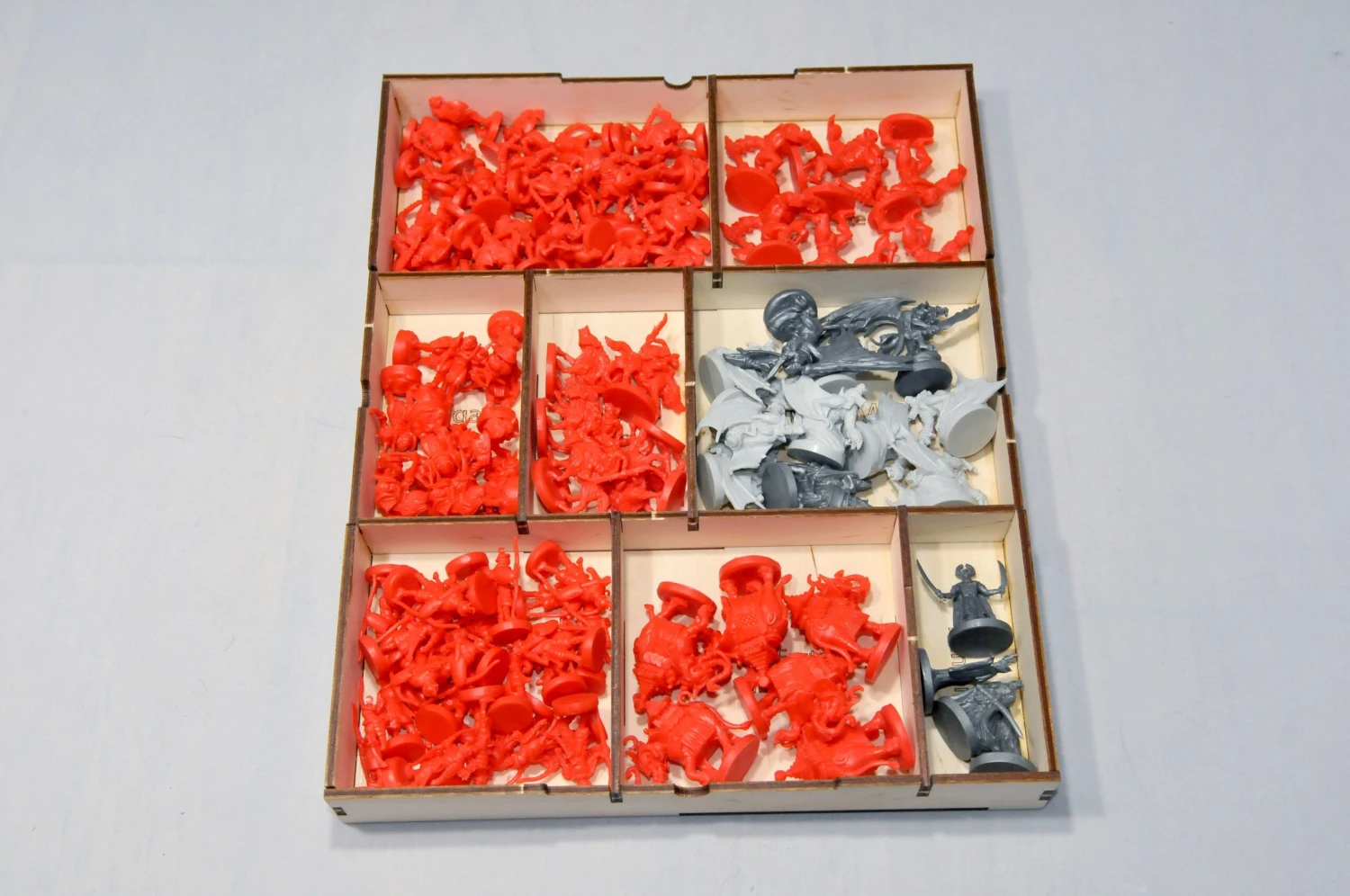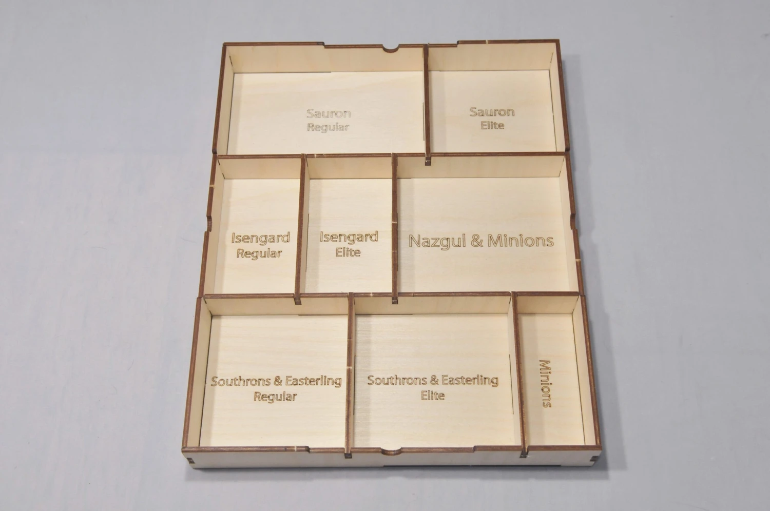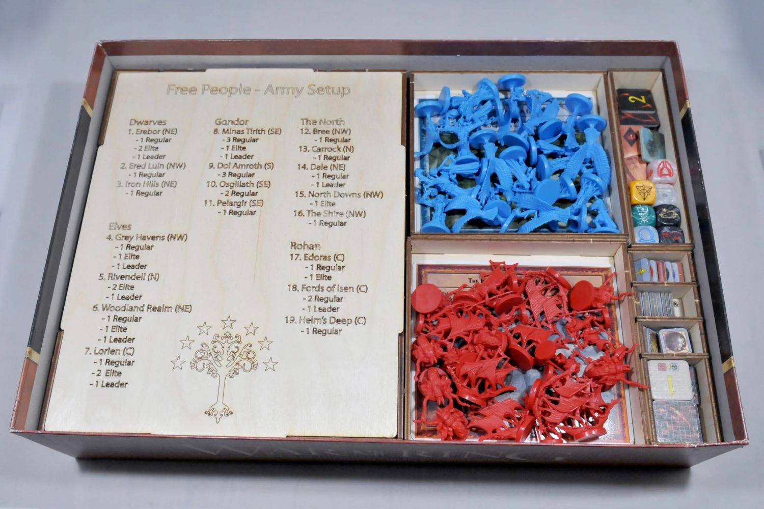 - Storage for game components is etched on the insert.